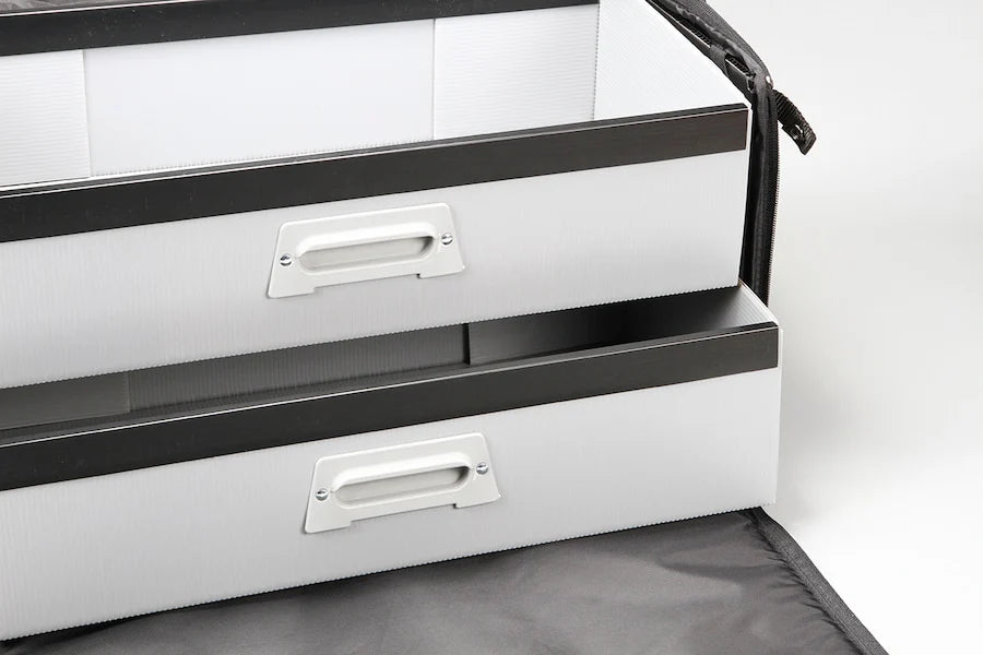 The inner case is made from durable plastic corrugated board and includes a convenient carry handle.