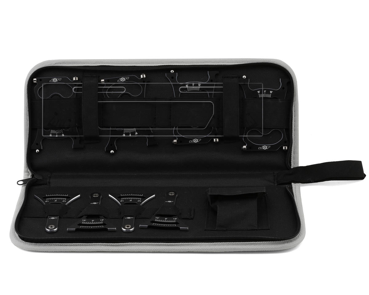 The J&T 1/10 On-Road Aluminum Set Up Station is engineered to provide precise measurements and repeatable adjustments for your race car. Each gauge is CNC-machined from high-quality aluminum for durability and accuracy. This station covers a wide range of key alignment parameters including camber, toe, and caster, making it easier to get your car dialed in for any track conditions. Whether you're prepping for club races or national-level events, this setup tool gives you the confidence to fine-tune every detail.